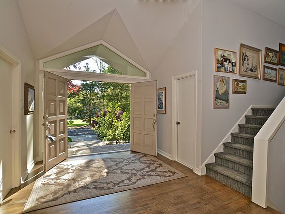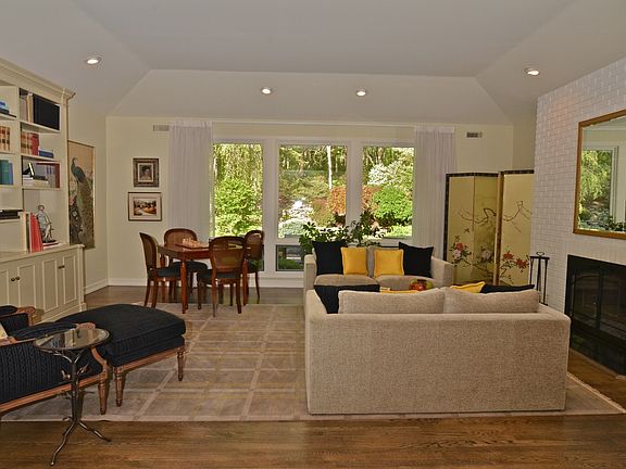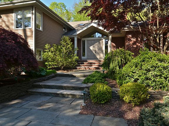 Set on a magnificently landscaped two plus acres on a quiet cul de sac in Chester Township, this dazzling five bedroom three and a half bath Custom home offers tranquil views from every window. The elegant Foyer reveals an open floor plan perfect for entertaining. Anchored by a rear wall of windows, the step down Living Room features hardwood flooring, high ceilings and a striking double brick wood burning fireplace. The fireplace opens to the warm Family Room boasting hardwood flooring, a full wet bar, built in bookcases and an entertainment center complete with a surround sound speaker system. Glass sliders open to the private rear acres, complete with a deck, patio and hot tub. Stacked stone walls and extensive landscaping provide the perfect tranquil oasis. Featuring a massive center island with breakfast bar, the Kitchen is a chef’s delight with a gas cooktop, double ovens, Subzero refrigerator/freezer, custom marble countertops, a spacious pantry, full tile back backsplash, an architectural skylight, and separate dining area. Completing this level is a spacious Formal Dining Room, Laundry Room, Powder Room and walk in coat closet.  The second floor features a dramatic Master Bedroom Suite including a dressing area with his and her customized walk-in closets, and a Master Bath with elegant marble countertops, double sinks vanity, stall shower and jetted soaking tub. Stairs within the suite lead to a magnificent third floor Sitting Room/Office complete with architectural windows and skylights overlooking the spectacular rear grounds. Three additional Bedrooms and a hall bath complete the second level. A Media Room with Surround sound and direct outside access, a Bedroom/Exercise Room, and a full bath provide additional living space on the Ground level. Additional amenities include, three zone central air conditioning, three zone natural gas heat, a large unfinished basement, central vacuum system, Hot Tub, a four bedroom septic system, and a four car attached garage. This one of a kind property combines every luxury with unparalleled privacy in an incomparable setting, all within minutes of downtown Chester.