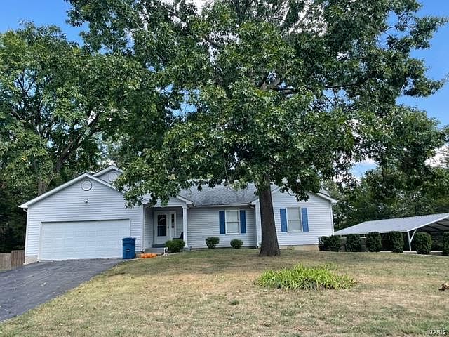 Hidden Country setting in Town and close to everything! This beautiful Ranch home sets on .93 of an acre. 3 bedrooms 2 full baths upstairs. Beautiful kitchen offering plenty of cabinets & pantry with breakfast bar. Dining area has ample space for entertaining and is open to the comfortable sized Living Room with wood burning insert fireplace. Shelves in the bedrooms can stay or be removed. 2 car attached garage with additional parking on the side, they would rather not leave the carport. Full basement that is a walk out with rough in for a bathroom, it is currently being used as a workshop. The backyard is completely fenced with a wood privacy fence, play yard for the kids and huge patio for entertaining and a firepit. On a septic and well water, water softener is leased. So much space, so close to shopping and Hwys yet tucked away in the woods. The perfect place to call HOME!!