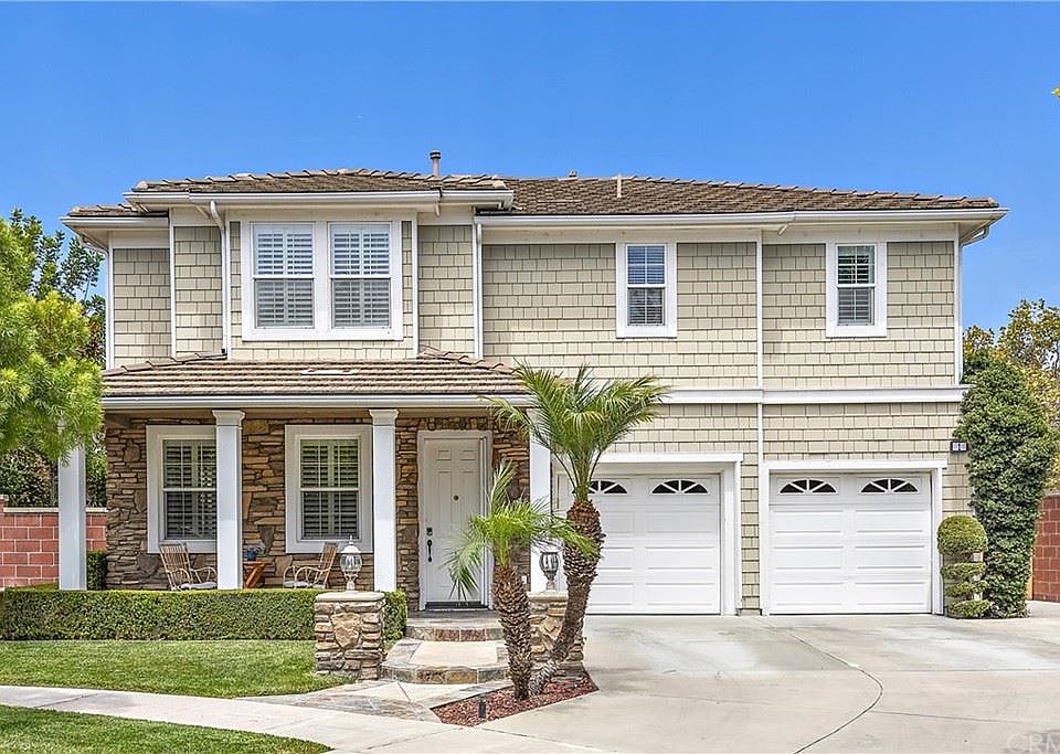 Headlining with a nearly 8000 sqft lot, this private, end of the cul de sac location, is enriched with a quaint covered front porch and huge wrap-around backyard oasis. This rare home sits on one of the best lots and streets in Ladera Ranch! Yes, you can have it all at this wonderful Family home complete with approx 2550 Sqft, 4 large bedrooms, 2.5 baths, kiddos play room off the kitchen & just down the street from Poet's Park, Oso Grande Elementary, Founders Park and Daisy Clubhouse. Features: Newly remodeled kitchen w/ updated quartz counters and marble backsplash, gorgeous Brentwood hardwood floors, amazing natural light and privacy and new rear windows to enhance your views to the yard. A very practical plan inclusive of a large Family room open to the kitchen & cozy breakfast nook complemented with an oversized island, several windows for an abundance of light and a relaxing fireplace and custom built-in cabinet. Upgrades including: hardwood floors, white cabinetry, plantation shutters, crown molding, recessed lighting, quartz kitchen surfaces, newer stainless appliances, all new interior paint and yes, REPIPED too. Upstairs you can appreciate the large laundry room with quartz counters, 4 full bedrooms including a large primary suite w/ soothing tub, new seamless glass enclosure and a large walk-in closet. Wait until you see the yard! Incredible yard with entertaining covered patio area, lots of grass for the kids to play, huge side yard, BBQ island, above ground spa and firepit. Don't miss this opportunity to embrace a rare lifestyle in one of OC's premier neighborhoods full of parks, hiking trails & resort-like pools, award winning schools, sport court's and amazing clubhouses.