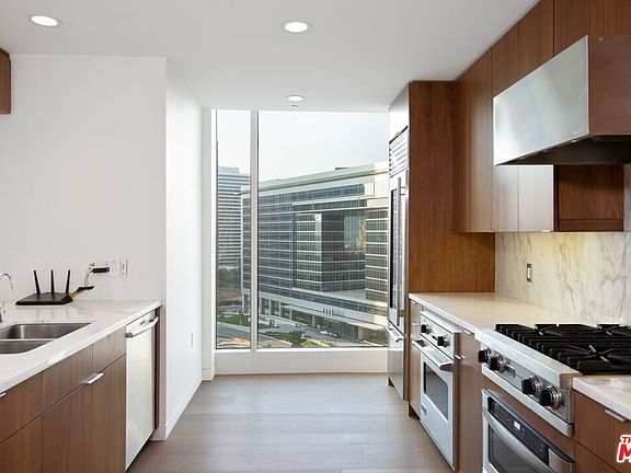 A highly desirable split-bedroom layout, with each bedroom positioned on opposite sides of the residence for optimal privacy. In one of the most prestigious buildings in Los Angeles, sleek contemporary features a private foyer with exclusive elevator-access, two bedrooms, two and one half baths and walls of windows for a bright, open interior. A stunning fireplace warms the great room, extending to a fantastic balcony overlooking Century City for indoor and outdoor entertainment. The open kitchen features marble counters, stainless steel appliances and a breakfast bar. Stunning views from the primary suite and a lavish en suite bath with dual sinks, a large walk-in shower and relaxing tub. Building designed by Robert A.M. Stern on nearly 4 acres. Outdoor dining rooms with fireplaces, fountains, walking paths & private spaces. Fully equipped fitness center w/spa treatment room. 75' outdoor pool w/spa. Screening room with surround sound, culture lounge, private dining room, children's playroom, wine cellar & conference room. Private driveway with guard gate & valet parking. Exquisite lobby with concierge and doormen. In Century City, near to shopping mall, restaurants, park, and Beverly Hills.