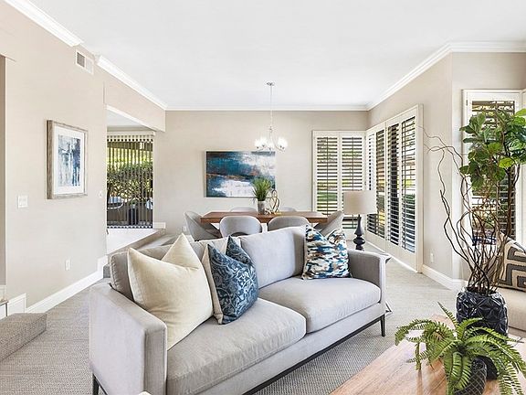 Located in the charming community of Rancho San Joaquin, this gorgeously remodeled single level condo (with no stairs at the entry level) spans over 1,450 sq feet of living space. Boasting a light and bright floorplan, the primary living spaces encompassing a beautifully appointed kitchen, complete with quartz countertops, stainless steel appliances, and recessed lighting, breakfast nook, and a sunken formal living room and dining area with sliding glass doors leading to two separate patios. Two spacious bedrooms complete this turn-key residence; each with their own en-suite upgraded bathroom and spacious closets. Enjoy all the amenities Rancho San Joaquin has to offer, including a sparkling pool and spa, and easy entry to William R. Mason Regional Park, featuring a large lake, walking trails, playgrounds, and picnic/entertaining areas. An ideal location in Southern Irvine ensures convenient access to shopping, dining, entertainment, John Wayne airport and award-winning schools (University High School & Rancho San Joaquin Middle School).