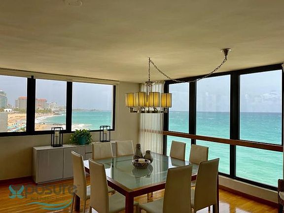 Condado: 3022sf, fully furnished apartment located in boutique building. Spectacular ocean front views from all the apartment: Spacious living room, dining room and family room, 3 bedrooms, plus maid's room or office, 4 full bathrooms and 3 parking spaces. Very private, one apartment per floor. Equipped kitchen with stainless steel appliances, central air conditioner, hardwood floors, electric power generator with capacity for all the apartment. Security 24 hours. Also available for sale..