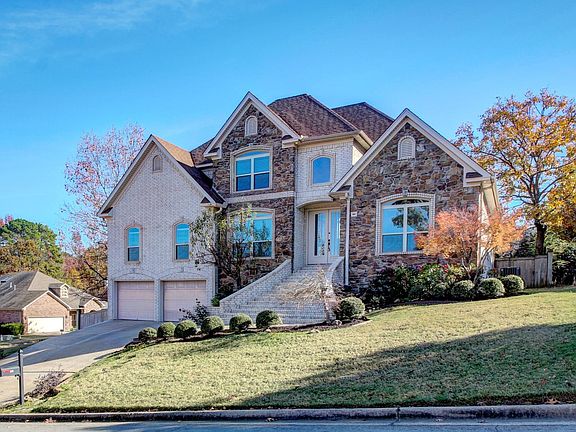 BEAUTIFUL Chenal home on corner lot with an inground pool and so many updates! 4 bedrooms plus a flex space along with 3 full bathrooms. Inviting, open living space with fireplace and views to the outdoor oasis. Venetian plaster walls in the kitchen and breakfast room area that leads to the flex space with double, French doors. The primary suite is on the main level along with another full bath, bedroom and spacious utility room. Upstairs are 2 more bedrooms, floored attic space and another full bath with bedroom and hall entry. New fixtures. new paint, new carpet throughout and newly sanded and stained hardwoods. The kitchen has new counters, new backsplash and freshly painted cabinets. New stove/oven. New faucets in kitchen and baths. New door knobs throughout. New windows in 2020, downstairs furnace had a new condenser and coils in 2017. Upstairs condenser heat pump and hair handler replaced in 2012. Pool has plumbing to add a heater. A gorgeous property that shows like new in an established neighborhood. It will be so easy to make this house your home! Photos are digitally staged.