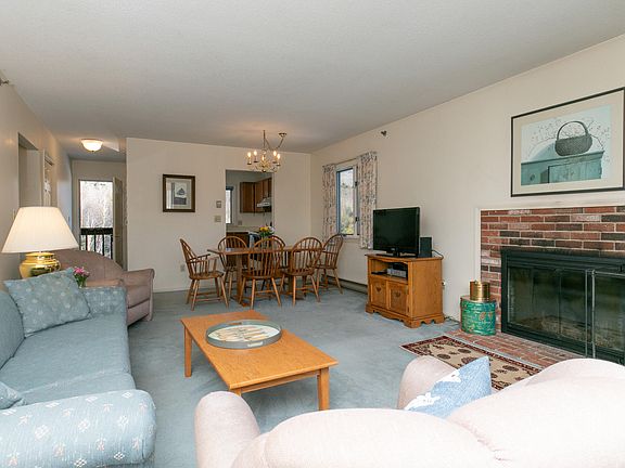 Located just minutes from Sunday River Ski Resort. This sunny upper-level end unit offers the perfect year-round retreat. A fabulous choice for outdoor enthusiasts. This is an ideal place to unwind after a day on the slopes, golf course, hiking and varied nearby activities, The wood-burning fireplace, and in-ground pool offer added appeal. Step inside to discover a furnished space designed for relaxation. Enjoy an open living and dining room, two bedrooms and one full bathroom. The living room and primary bedroom each have glass doors that open out to two separate balconies, keeping you connected to the beautiful outdoors. The complex enjoys open covered entryways and the unit comes with a private conveniently located storage locker for skies and additional equipment. Enjoy spending time in such a vibrant area, close to The Androscoggin River, Bethel area amenities and Grafton State Park. There is so much here to explore!