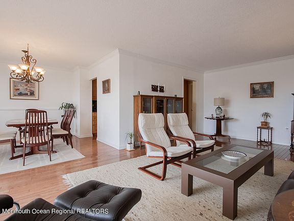 Amazing opportunity to join the Channel Club community. Unit 406 has been renovated and is ready for its next owner. It includes features that are not part of the original design, such as French doors from the second bedroom to the living room providing easy access to the living and dining areas, as well as privacy when used as a bedroom. All new windows, wood flooring and new carpeting in the master bedroom. A well designed kitchen with pullout shelves, a laundry room for easy storage of cleaning products and equipment. A lot of closet space modified from the original design as well. It is a great sunny living space in this excellent building with valet service, tennis, exercise rooms, outdoor pool and storage areas to mention a few. Minutes away you will find the quaint town of Monmouth Beach, sandy beaches, a marina for large and small boats across the street, along with excellent restaurants. Pier Village is an approximate 4 minute drive and the Seastreak ferry to NYC approx 15 minutes away.