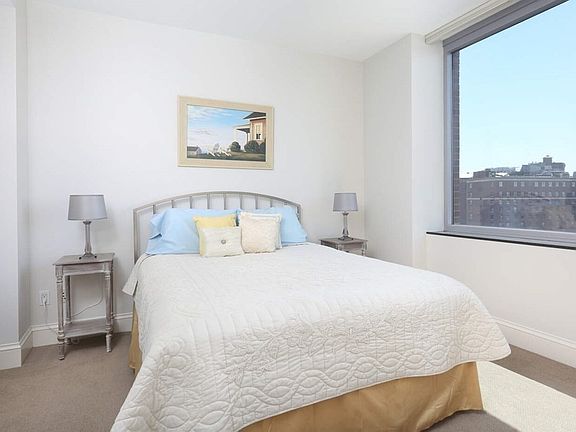 Sun-splashed, ~1,200 SF, 2 bd, 2 ba corner home is located on the 15th floor in the South Tower. The home, which faces S/W, is perched +150' above the sidewalk. Its position/ orientation and height in the building, along with its ceiling height (+9') ensures the home is flooded with light, has great city and skyline views and sunsets. Open-concept layout (living/dining/kitchen). Kitchen has Poggenpohl cabinets, S/S, gas cooking. The 2 bedrooms offer a "split" layout, ensuring privacy. Main bedroom has en suite bath. Every exterior room has remote-controlled window treatments. Windows can be controlled individually or, as in the living area, can be grouped together. Bedrooms have black-out shades. W/D, gas cooking. "One Charles" is a full-service, Concierge building. The staff provides the highest level of attention. Residents enjoy 24/7 service to assist with all their daily needs. Amenities include Residents' Club Room, Fitness Ctr., Media Room, Caterers' kitchen, on-site prop. mgt.