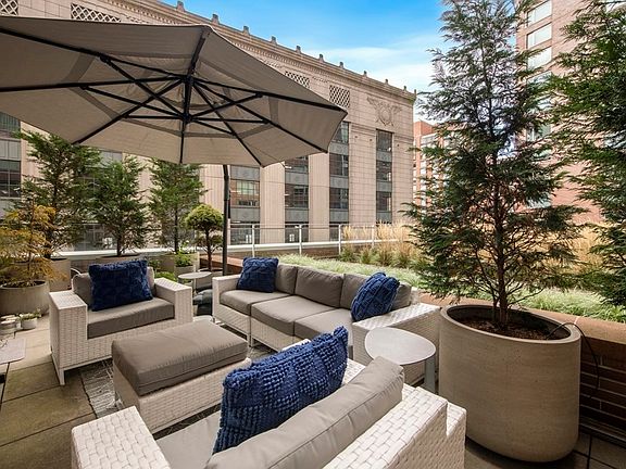 One Charles offers luxurious, full-service living in Boston’s Back Bay. This bright and airy residence has been beautifully updated and maintained, offering two bedrooms, two full bathrooms and spectacular private outdoor space. The open concept living, kitchen and dining area showcases oversized windows, handsome hardwood flooring and direct access to the expansive outdoor patio, perfect for entertaining or alfresco dining. The gourmet kitchen is equipped with quartz countertops and backsplash, high-end appliances and a custom island. The primary suite features custom built-ins, ample closet space and a marble bath. The guest bedroom could also function as a home office or study with tasteful custom built-ins throughout. Building amenities include 24-hour concierge, fitness room, conference room, clubroom, and valet or self-parking. Located just a block to the Public Garden, Boston Common and Newbury Street, this stunning property includes one garage parking space.