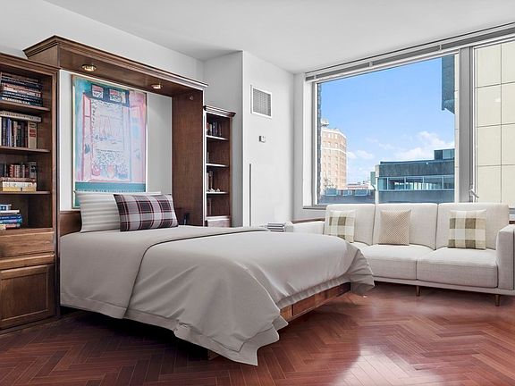 Just a block away from the public garden and swan boats, One Charles is in a perfect Back Bay location. Wonderful common areas greet you as warmly as the staff, while the unit makes you feel at home with beautiful cherry flooring and high end appliances. Built in shelving complement the custom Murphy bed, which allows you flexibility with space. Multiple big closets help you with storage, while the fixtures all reflect quality. Facing south there is sun flooding in all day, and the location allows you easy walking access to all that both Back Bay and Downtown have to offer. Parking is available if you have a car. Come take a look at how easily you can afford a luxury home in the best area of town!