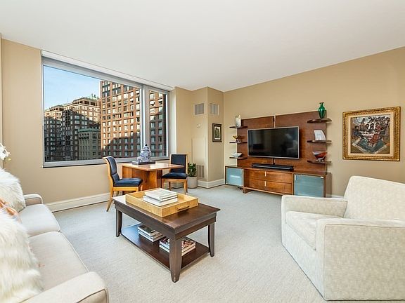 Welcome home to a beautifully appointed one bedroom and 1.5 full bathroom home in the north tower of Millennium Partners' luxurious One Charles. This lovely southwest corner property provides beautiful light along with cityscape and park views through a wall-of-windows. A newly refreshed kitchen showcases white Poggenpohl cabinetry finished with stainless steel appliances, granite counters and a breakfast bar open to the living room. Generously sized living/dining room with Brazilian cherry herringbone floors accented by a bespoke wool Landry and Arcari carpet. A well-proportioned master provides an en-suite marble bath, two closets and a nook for a home office workspace. In-unit luxuries include central air-conditioning, laundry and ample storage. One Charles is a full service 24/hr concierge building with doormen, security, valet parking for guests and a club level with fitness center and conference room. One unreserved self-park garage parking spot included.