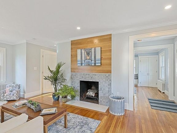 Modern flavor & style is waiting for you in this stunning renovation! Open concept kitchen & dining features new cabinets, impressive quartz countertops, Samsung SS appliances, high end hardware, pantry & beautiful HW floors. New windows, designer lighting, Grohe kitchen & bath faucets, NEST thermostat. Custom built window bench next to coat closet. Spacious & bright living room features marble surround & shiplap mantel for a true piece of art & wood burning fireplace! Circular layout allows parents to watch little ones while cooking. Sunlit office /playroom add additional living space. Half bath completes 1st fl. Upper level features 3BR, stunning new bathroom w/mozaic accents & marble floor, faucets & spacious linen shelves. New laundry rm w/Samsung W/D. Garage. New roof. New boiler. Beautifully designed spacious yard. New shed. Taste & thoughtfulness abound throughout this home.
