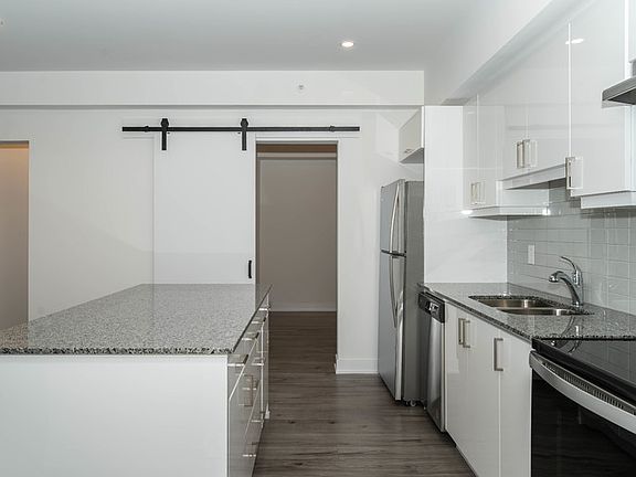 Bright and beautiful, open-concept 2 Bedroom + Den with 2 Bathroom condo $2,400 + Utilities!! NOW AVAILABLE nbsp;Popular layout with split bedrooms for ultimate privacy! The foyer leads to an open living space and stunning views of the environmentally protected land. Wide plank laminate flooring throughout. The cabinets are a contemporary slab style in bright white that are easy to clean and highlighted by granite counters. A trendy subway tile backsplash, stainless appliances and a stainless range hood complete the look. Large windows allow for lots of natural light into every space and pot-lights are a bonus. The ensuite includes a tiled walk-in shower with glass doors and a granite counter. In-suite laundry is conveniently located by the bedroom and includes a washer and dryer. There is a den/office next to the kitchen that is separated by a modern sliding door. HVAC system for heating and cooling. Incredible, large outdoor balcony with gas hook up for a barbeque. A Must See EXTRAS Stainless Steel Appliances: Fridge/Freezer, Stove, Dishwasher, Hood Exhaust, Washer & Dryer.