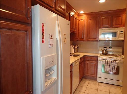 End unit full of sunshine - offers new kitchen with silstone counters, living room with fireplace, formal dining room with sliders to private new fenced back yard. one bedroom on first floor(being used as den) with a full bath in foyer, two large bedrooms upstairs with full bath in hall. ceramic tile entrance foyer