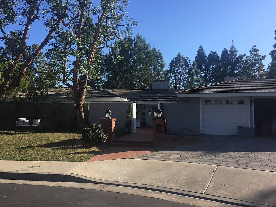This light and bright home is nestled in Big Canyon, located at the end of a cul-de-sac. The living room boasts gorgeous dark hardwood flooring, extra large fireplace, French doors leading to rear yard and formal dining room adjacent. The kitchen is large with stainless appliances, plenty of cabinetry, ceramic tileflooring and leads to the large Family Room with dark hardwood flooring, brick accent wall, French doors leading to side patio and fireplace. Four carpeted bedrooms