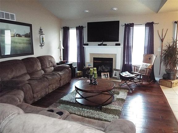 Traditional style with contemporary feel. Open floor plan keeps everyone connected. Foyer and living room with wood flooring, Tile flooring in the Dining room, kitchen and laundry room. Living room features a vaulted ceiling and fireplace with gas logs. The patio is accessed from the dining room for easy entertaining. The main floor laundry is located by the garage and kitchen for added convenience. There are six panel doors throughout. Master bedroom with walk in closet. The basement is plumbed for another bathroom and is ready for your finish. It includes an egress window. Home is located on a corner lot, right across the street from the Albers park. Easy access to Scott AFB about 20 miles west and the metro St Louis area can be accessed from I64 south of Albers or west through New Baden. Come home to small town living.