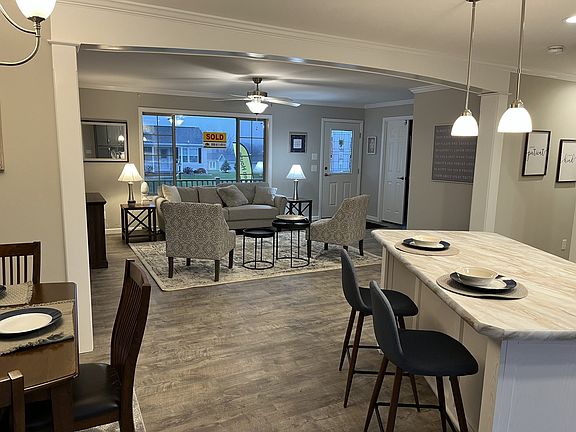 Now showing our very popular Deerfield model built with 2 bedrooms and an office/den off of the living room. This is our first model with the Lighthouse Red siding and sand colored exterior trim. This home has the higher 7/12 roof which allows for the walk up attic storage. Laminate flooring throughout, large front covered porch and peaceful patio in the rear of the home. Kitchen is finished with Commodore's new storm grey colored hardwood cabinet doors with their new white cabinet for the large kitchen island! Early reviews of the home have been extremely positive. Tours of the home are now available anytime Mon- Fri 9 - 5, Sat 9 - 3 or by appointment.