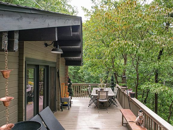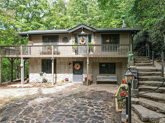 For outdoor enthusiasts, there's a garden area, shed, fire-pit, as well as a wrap-around deck that's perfect for entertaining, offering year-round views to savor in worry-free comfort. The property features a stone staircase and foundation, and it's connected to city water. Plus, it's just 10 minutes from Asheville, minutes from Black Mountain located in Swannanoa.