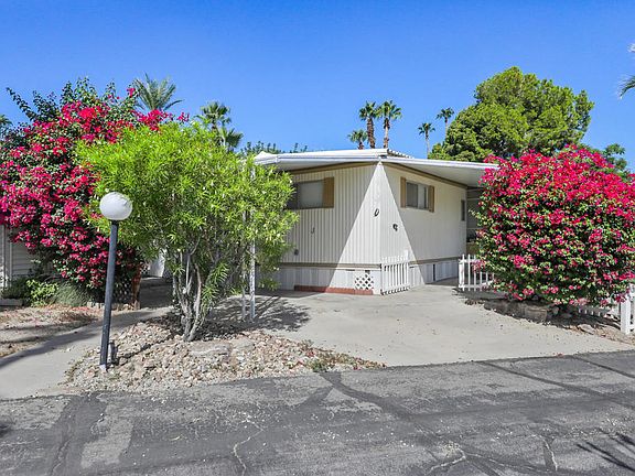 Best deal in Palm Desert! Great opportunity for 1st time home-buyer! Turnkey/fully furnished home in a rare, family friendly mobile home park! Oversized, fully fenced corner lot with mountain views! Cozy screened in front sunroom! 2 bed/2 bath plus spacious living room/ dining room with built-in hutch. Open den area off the kitchen with built-in wet bar. Updated kitchen with plenty of storage & a breakfast bar. Large master bedroom with adjoining bathroom. 2 storage sheds. Inspections and repairs completed! Silver Spur Community amenities include: Gated entry, Billiard Room, Fitness Room, Bocce Ball court, Swimming Pool and Spa Desert Garden Walk, BBQ and Lawn Area, RV and Boat Storage. Close to The El Paso Shopping & Dining Corridor.