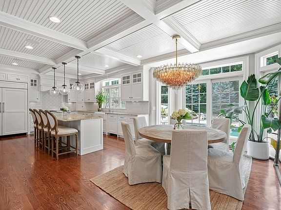- Features: Coffered Ceiling(s), Flooring - Hardwood, Window(s) - Picture, Dining Area, Pantry, Countertops - Stone/Granite/Solid, Kitchen Island, Breakfast Bar / Nook, Exterior Access, Open Floorplan, Recessed Lighting, Slider, Stainless Steel Appliances, Wine Chiller, Gas Stove, Lighting - Pendant, Crown Molding, Decorative Molding