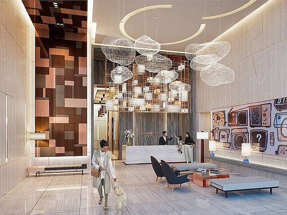 A European walnut entry door, walk-in closet and white oak foyer welcome you to this luxurious residence featuring one bedroom and one bath. Designed by KPF Architects, this home features white oak floors and oversized windows facing a northern exposure. The custom kitchen designed by Katherine Newman features cerused oak cabinetry with separate pantry, white quartz slab countertops, backsplash and a top of the line appliance package by Miele. Oro Puro quartz flooring and walls with light marble mosaic wall features with a custom Bianco Carrara marble and cerused oak vanity offer spa-like tranquility in the radiant-heated three-fixture master bathroom. Recessed medicine cabinet with Starphire glass, Waterworks Classic tub/shower combination with custom Waterworks fixtures complete this serene retreat. Additional features include: Miele washer/dryer, year-round zoned temperature control via central heating and cooling system. Amenities include a 24 hour attended lobby, a fitness center, basketball and squash court, 65 indoor salt water swimming pool, a residents' lounge, a screening room, rooftop infinity pool, a playroom and bicycle storage. Anticipated 25-year tax abatement.