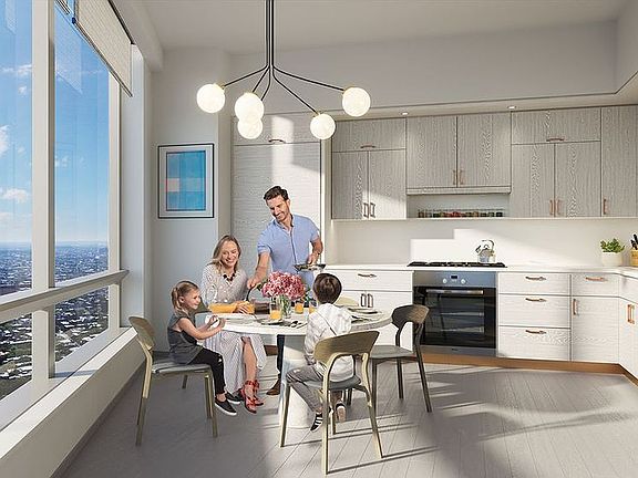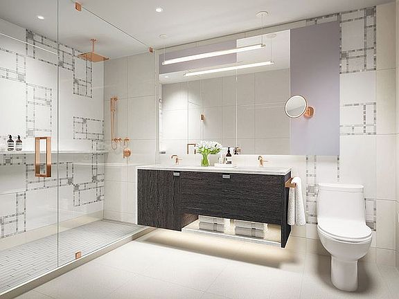 A European walnut entry door and white oak foyer welcome you to this luxurious studio residence with bath. Designed by KPF Architects, this home features white oak floors and oversized windows facing a southern exposure. The custom Pullman style kitchen designed by Katherine Newman features cerused oak cabinetry with white quartz slab countertops, backsplash and a top of the line appliance package by Miele. Oro Puro quartz flooring and walls with light marble mosaic wall features with a custom Bianco Carrara marble and cerused oak vanity offer spa-like tranquility in the radiant-heated three-fixture master bathroom. Recessed medicine cabinet with Starphire glass, Waterworks Classic tub/shower combination with custom Waterworks fixtures complete this serene retreat. Additional features include: Walk-in closet, Miele washer/dryer, year-round zoned temperature control via central heating and cooling system. Amenities include a 24 hour attended lobby, a fitness center, basketball and squash court, 65 indoor salt water swimming pool, a residents' lounge, a screening room, rooftop infinity pool, a playroom and bicycle storage. Anticipated 25-year tax abatement.