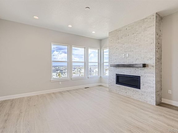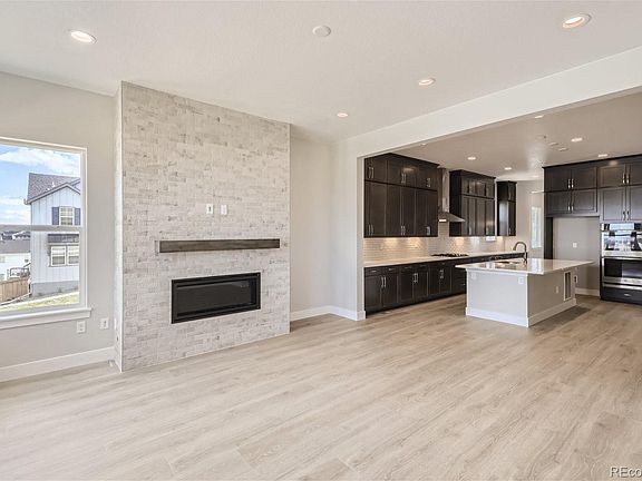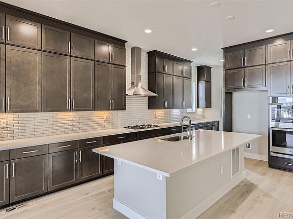 MLS#4556474 Built by Taylor Morrison, Ready Now! The Eldora II is a spectacular ranch home with FINISHED BASEMENT in the beautiful Timberline community of Castle Pines. This home sits on a corner lot at the back of the community and offers a variety of upgrades including 10' ceilings throughout the main floor, stacked Slate cabinets to the ceiling of the kitchen, Built-in Stainless steel appliances including a gas cooktop, beautiful modern fireplace in the family room and private covered patio at the back of the home. Relax in the spacious owner’s suite and bathroom that features a large walk-in shower, dual vanity, and 2 walk-in closets! An additional secondary bedroom and bath are near the owner’s entry from the 3-car garage, front bedroom with en-suite bath and main floor flex space can be used as an office, dining room or den. Two additional basement bedrooms and full bath provide privacy for family and guests. Structural options include: full-finished basement, shower at bath 2, 12’ sliding glass doors, covered patio, modern fireplace, door to laundry room from walk-in closet, owner’s bath config. 4, and open railing to basement.