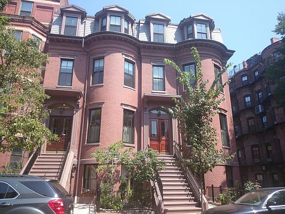 Spacious Sun Drenched Penthouse Duplex with Parking and a spectacular new roof deck. Windows in the front, side & rear, a bonus skylight overhead, sun streaming in to warm you on cold winter days. Shutters to keep it cool with central A/C for summer. Wood burning fireplace in the dining area. Hardwood floors just refinished are thru/out the duplex. The stunning red bedroom has direct access to a oversized deck. Storage is well appointed with custom closet systems. The kitchen was partially restored with granite to match the stainless steel appliances. Bosch washer & dryer in foyer outside bathroom. 2 bedrooms have en suite baths. The master bath boasts open space with double sinks and a glass enclosed shower. A wall of shelves creates space for books, art etc. The top floor and the roof deck give a panoramic view of the city. Treelined Claremont Park near Restaurants, Galleries, Copley, Transportation, Shopping & Symphony Hall.