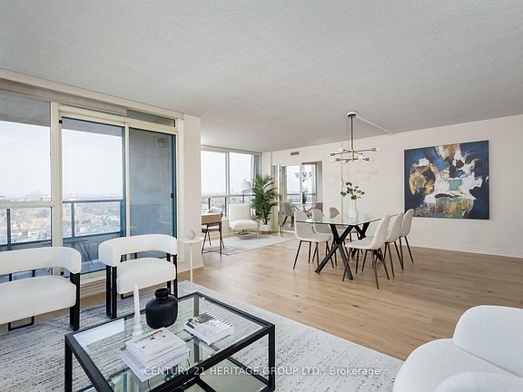 Welcome to Skyrise's Bonaventure Model. An exquisite Northwest corner suite boasts 1815 sq ft as per builder's floor plan, with expansive surrounding views. Enjoy a split 2-bedroom and 3-bathroom suite in luxurious and convenient condominium living. Step into a bright and spacious living and dining area featuring beautiful new engineered hardwood floors, ideal for entertaining in style. A walkout to a balcony provides beautiful sunset views and an ideal space to unwind and relax. The large kitchen is a chef's dream featuring extensive storage, engineered hardwood floors and granite counter tops - perfect for those who love to cook and entertain for large groups. The primary bedroom easily fits a king size bed with room to spare and features an ensuite bathroom and two walk-in closets for optimal storage. A spacious second bedroom that fits a queen bed also includes an ensuite bathroom, and offers privacy and a large window that floods the space with natural sunlight. Storage won't be a problem here with an additional storage and laundry room, plus a locker for extra storage. Two indoor parking spaces add convenience and comfort all year long. This condominium is in a building with top-notch amenities including an indoor pool, tennis courts and a large private park, and is just steps from Yonge Street and restaurants, shops, schools, and public transit. Make this your dream home!