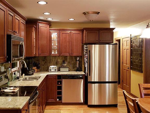 Comfortable Cape with Beautiful Updated Kitchen, Stainless Steel Appliances, Granite, Hardwood flooring. Eat-in Kitchen opens to Family Room with Striking Custom Staircase that leads to Master Suite on Second floor with Many Closets and Second Bedroom. Open Stairs lead to additional Family Room, Bar, Laundry Room with locally sourced hardwood flooring in Basement. New Roof, Windows, Vinyl Siding approx. 2008'. New Boiler 2014'. Soapstone Wood Stove. Public Water hook-up available. Move right in!