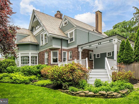 This beautifully presented, late-1800s stone and scallop-shingled gem, ornamented with Queen Anne Victorian elements, retains the charm of a bygone era. Original wood floors, intricate detailing, and three decorative fireplaces (all conveying as-is) evoke a sense of history. The kitchen is a blend of old and new, featuring a Viking stove nestled in a brick hearth, ceiling-high cabinets, a brick slate floor, and a built-in table. The formal living room boasts an arched brick fireplace, while a corner fireplace is a focal point in the dining area. The first level is completed by a family room with a curved window wall, a three-season sunroom, a mudroom, and a powder room. Upstairs, the lavish main suite offers a soothing retreat with a seating area, three walk-in closets, and a spa-like bathroom. Two additional bedrooms share a hall bath with a penny tile floor. The third floor houses the fourth bedroom, a full bath, and a home office/homework room with a built-in desk. Ample storage is available throughout the home, including a walk-in attic and a partially finished basement with a laundry area. Situated on a prime corner lot, this home is just blocks from downtown Princeton, Princeton University, and the train station.
