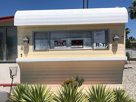Spacious One Bedroom One Bath Mobile home located in convenient Tramview Mobile Home Community - the premiere 55 years old and older mobile home community. This unit offers a large great room including Living Room with Sleeper Sofa, Dining area and Kitchen. The hall bath is light and bright and the wood paneled Bedroom feels like a bedroom in an Idylwyld Cottage. There is the roof positioned evaporative cooler, also known as a swamp cooler. There is also a contemporary air-conditioner in the bedroom as well. Plenty of closets in the bedroom plus and outdoor shed for ample storage and patio furniture. There is also a washing machine that is located outside on the covered patio. Tramview has a monthly rent of $735.00 plus utilities used, but Sewer, Water and Garbage are included in the base rent. Tramview also features a lovely pool and spa, community center with two kitchens, a banquet hall, stage, billiards and a piano plus there are 9 shuffle board lanes as well. Tramview his also convenient to Palm Springs Int'l. Airport and downtown Palm Springs. There is nightlife and restaurants nearby and Target and Trader Joe's are just steps away! Welcome to you new home!!