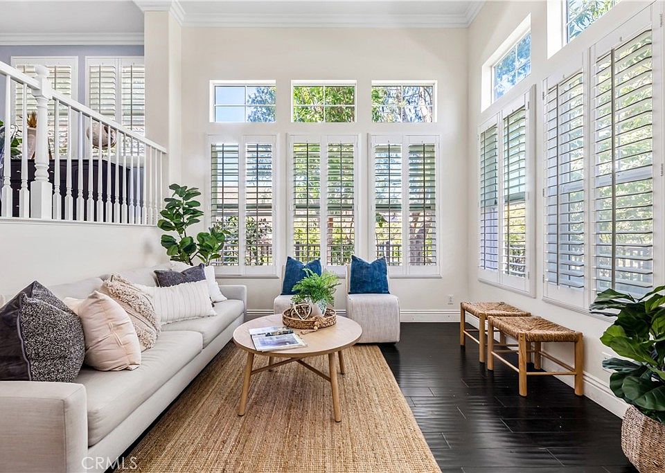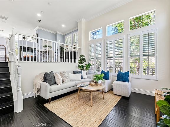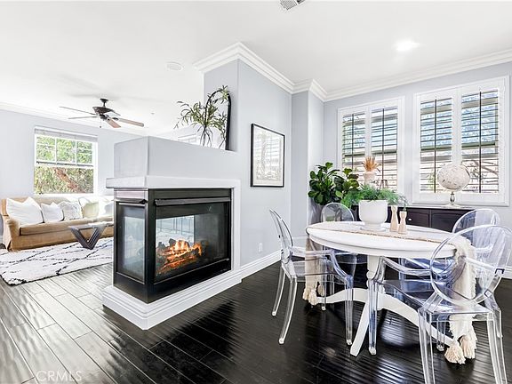 Private and serene, this gorgeous home is perfectly located within the highly-desirable Briar Rose community. Surrounded by mature trees, the wrap-around porch is an inviting and private outdoor space, which overlooks a lush green belt and gazebo, perfect for entertaining. With soaring ceilings and tons of natural light, this end-unit features an open-concept floor plan with multiple living spaces, a luxurious dining room with fireplace, and eat-in kitchen which opens to the family room. The kitchen boasts an oversized granite island, tons of counter space, and stainless appliances. A guest powder room and large under-stair storage closet complete the lower level. The upstairs features three spacious bedrooms, two full bathrooms, and a convenient laundry room. The luxurious primary suite features a huge walk-in closet and bathroom with dual-sink vanity, large soaking tub, and glass stall shower. Upgrades throughout the home include crown molding, plantation shutters, recessed lighting, custom paint and re-piped with Pex piping. The oversized 2-car garage includes a huge bonus storage area. The Briar Rose community offers award-winning amenities, including 14 pools, 4 clubhouses, tennis courts, a sports park, playgrounds, walking trails, biking trails, skate park, dog park, and a private water park. Walking distance to Oso Grande Elementary. Don't miss this opportunity to live the dream Ladera Ranch lifestyle!