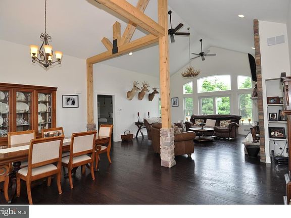 Expect the unexpected in this 3 bedroom, 2 1/2 bath custom built 2862 ranch located on a cul-de-sac in Springfield Township on 4.9 acres. When this magnificent home was built, it was specifically angled to accommodate the rising and setting sun. Enter from the covered porch that is perfect for relaxing after a long day. Open your double front doors to the entry foyer which has views of the living room with stone fireplace, vaulted ceiling, and hardwood flooring. The dining room is open to the living room for a great flow when entertaining. The modern country kitchen boasts granite countertops, eating island, tile backsplash and hardwood flooring. The kitchen design was made for social gathering while highly efficient for cooking. There is a den or office sitting in the front of the home with French doors, separate laundry room, and ~ bath. The floor plan was designed to offer private two additional bedrooms and jack/ jill bath on the other side of the house for guests when needed. The master suite offers a luxurious bathroom with granite countertops, tiled shower stall, and freestanding tub. The backyard is complete with a covered patio and deck overlooking the private backyard. Additional features include a full basement and 2 car garage. This home is just fabulous!