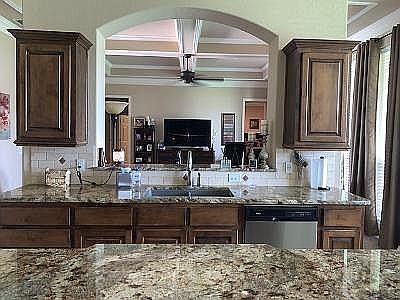 1 Owner Home; 3 Bedrooms, 1 Study, 2 Bathrooms Immaculately maintained one story, all brick home on an oversized corner lot in a desirable subdivision. This home has space both inside and out. There are extra storage closets located throughout the home. There is also an oversized driveway for two car attached garage with floored attic storage accessible from the garage. For anyone that needs more storage (work shop), or maybe a place to put a boat or work on a classic car, there is a matching over-sized garage (16' x 32') built in the back with a driveway. Just inside the entry is a beautiful study with wood flooring, built in bookshelves/cabinets and glass French doors. The entryway opens up into a large family room with a high vaulted tray ceiling with triple crown molding. The living spaces are open concept with a direct line of sight from the kitchen to the family room. The granite countertops, walk-in pantry, custom cabinetry, and the large island make this kitchen beautiful. Custom cabinetry, granite, and triple crown molding is seen throughout the house including in both bathrooms and the large utility room. From the spacious bedroom to the jacuzzi tub and large walk in shower, the master retreat is a treat for any home owner. It also includes a large walk in closet with a built in dresser and extensive shelving. There are two other spacious bedrooms on the other side of the house. The house is also equipped with low maintenance and energy efficient features. It includes energy efficient windows with UV screens to lower cooling costs. It also includes energy efficient appliances such as central air and heat. The built in sprinkler system makes it easy to maintain the landscaped front and back yard and the electrical plugs under the eaves are great for hanging lights! If you are looking for safety, an 8-10 person storm shelter was installed in the attached garage in November 2017. New cedar fence on curbing 9/10/20 (less upkeep).