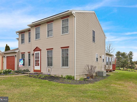 Welcome to 1 Coach Lane in the Oley Township Charming Dale Community. This Oley Valley Schools 2 story offers 4 bedrooms, 2.5 baths and 2228 square feet of absolute move-in ready living area and is tucked away on a nice half acre lot with views. Step inside the center hall engineered hardwood entry with a formal living room to the left and a formal dining room to the right just in time to serve those holiday dinners prepared in the newly remodeled maple eat-at island kitchen. Kitchen features include Quartz tops and appliance package remains. French doors from the kitchen to the 3 season sunroom with knotty pine cathedral ceiling and walls with a tile floor. Open floor plan connects the kitchen to the spacious family room with pellet stove and beautiful engineered hardwoods. Take the stairs to the owners suite with new carpet, walk-in closet and newly remodeled walk-in shower bath with tile floor. 3 additional generous sized bedrooms and a full tub/shower hall bath completes the upper level. All this plus a full unfinished lower level awaiting your imagination, 2 car attached garage, close to schools, parks, the Oley Valley Youth league, shopping and dining, transferrable solar panel lease contract to save $$$ on electric bills and so much more make this the one to see! Schedule your showing today!