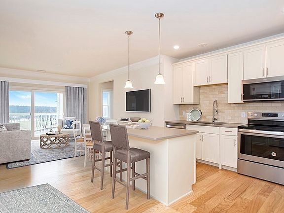 Available now! Top floor with southern exposure! Make the transition to a low-maintenance lifestyle easy with the Franklin home design. This beautifully designed 2 bed, 2 bath home offers an inviting open floor plan. You’ll find plenty of cabinet space and pantry in the kitchen along with quartz countertops, a large island and stainless-steel appliances. The gathering room is the perfect place to kick back and relax or unwind from your busy day out on your private balcony. The additional flex room can be used as an office, a den or both. The roomy primary suite has a generous walk-in closet, and the perfect-sized full bath offers quartz countertops, and walk-in shower. The second bedroom, full bath with tub/shower surround, large laundry room and coat closet rounds out the rest of this perfect home. *Price includes upgrade selections. Chauncy Lake by Del Webb is Massachusetts’ premier Active Adult (55+) community with 11,500 SF Clubhouse.