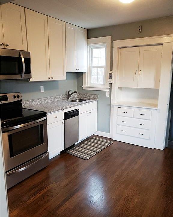 Nicely renovated beautiful single family home with a new kitchen boasting bright white cabinets, granite counters and stainless appliances. Refinished hardwood floors, newly tiled bathroom, nicely painted and a full basement with washer and dryer great for storage. One car garage and a back yard. Small pets considered on a case by case basis.
