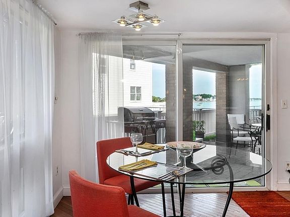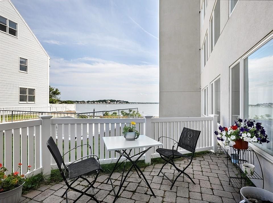 NEW PRICE! Contemporary, first floor one level living and open floor plan that extends to your private courtyard with beautiful bay views. This unit offers indoor and outdoor living space. Move in to freshly painted bedrooms and bathrooms. Open Concept Kitchen, Living and Dining Rooms. Wake up to your morning cup of coffee from your own court yard and end the day with a glass of wine with a view of the bay. Smell the salt air, see the ripple of waves and hear the sea birds. Commute still a consideration? A Quick Ride to Boston from the Hull Ferry, or take the T at the Nantasket Junction. You can enjoy Nantasket Beach just a short distance away. Lots of New Energy in Hull consider being part of it.