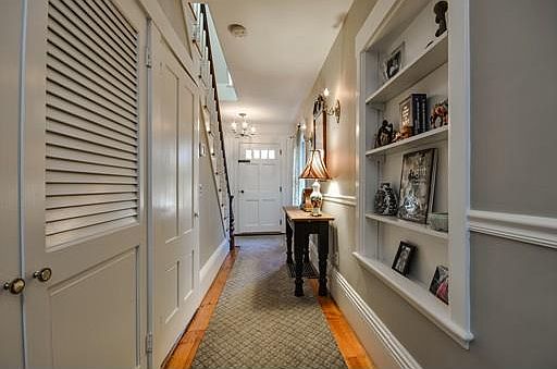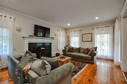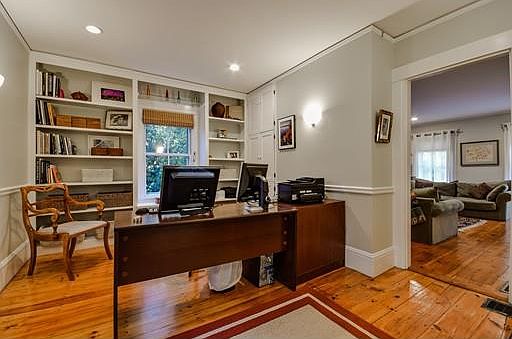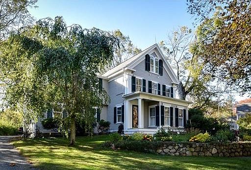Picture postcard Circa 1851 Village Colonial with incredibly charming curb appeal! This delightful home is conveniently located in a fabulous in town location. The interior is bright, sunny & well cared for throughout, with wide pine floors, nice detailing, loads of built ins and homey ambiance. There is a cathedral ceiling kitchen, huge pantry/laundry room, fireplaced (with pellet stove insert) living room, formal dining room and lovely music room/den. There is also a first floor office with built in bookcases.There are 3 spacious bedrooms on the second floor including spacious master suite with full bath. The 3rd floor is finished with another bedroom & office. The traditional character & ambiance makes this not just a house but a home. Large level back yard is perfect for gardening & play & comes with a little playhouse and large red barn. This quintessential old New England charmer is a real treasure!!!