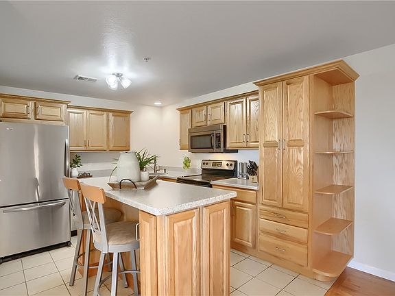 Beautiful maintenance-free & 1-level living in the heart of Kennedy Twp. This lovely 2 bdrm/ 2 ba is immaculate & spacious w/an open concept living/ entertaining space. Hardwood floors in the DR, LR & bdrms. Large picture windows flood the space w/natural light highlighting the neutral decor. Kitchen features SS appliances, large pantry w/ pullouts, recessed lighting, large center island & brand new solid surface counters! Kitchen is open to the DR & LR creating the ultimate open concept. Very large owners suite features a walk in closet as well as additional closet & spacious en suite with walk in shower. Laundry Rm right next to the owners bedroom w/even more storage. Nicely sized guest bedroom & full guest bath complete the home. Sliding glass doors lead you to the covered balcony. HVAC w/ heat pump 2021. The secure building provides common LR & Kitchen area to host friends. 8x6 secured storage in basement & assigned parking in Lower level garage & parking lot. 55+ community.