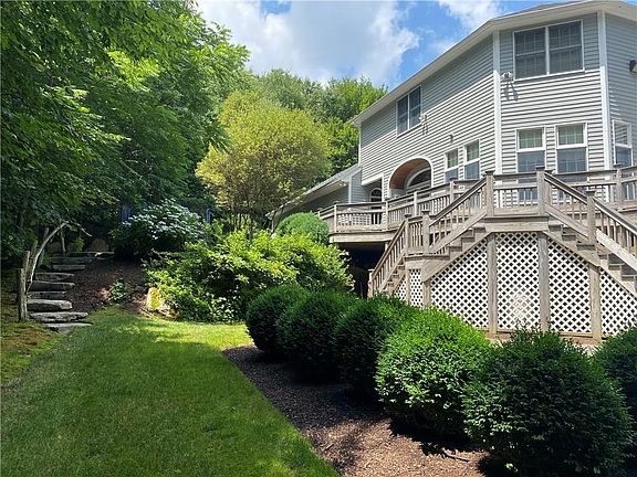 Welcome to Westwood Farms! Gorgeous and naturally bright spacious colonial set on lush park-like grounds in cul-de-sac of highly sought after East Greenwich neighborhood. Two-story foyer entrance with wrap-around second floor balcony. Perfectly designed first floor flow with open concept eat-in-kitchen with granite countertops, stainless appliances and cherry cabinetry. Formal dining room, formal living room, play room and family room offer ample options for gathering. Private home office with built-in cherry cabinetry is ideal for work-from-home needs. Laundry and half bath on first floor as well as full mud room off 3-car garage entrance into home. Upstairs, 5 spacious bedrooms and 3 full bathrooms including master suite with changing room and private spa-like bathroom with slate floors, quartz countertops, steam full-glass/tiled shower, towel warmer and more. Finished basement offers ideal playroom, guest quarters, au pair living space with rec room, bedroom, full bathroom and walkout to yard. Expansive deck with two-staircases leads to 2 acre flat yard perfect for outdoor entertaining and playspace. Meticulously maintained, move-in ready. Located minutes to highway and downtown East Greenwich. Truly a must see!