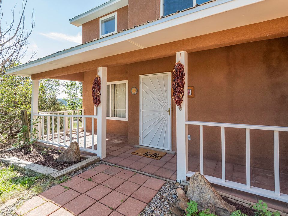 Fall in love with this mountain retreat in Cedar Crest, nestled in the eastern Sandia foothills and just a short walk to shops, restaurants, and a local coffee shop. Set on a private 0.56-acre lot, this charming 2-story Northern NM home features main-level living with kitchen, dining, studio, laundry, and powder room. Upstairs offers three bedrooms and two full bathrooms, including a spacious en-suite with a separate tub and shower, as well as a deck with stunning mountain views. Radiant heat and a cozy wood stove keep you warm all winter. Enjoy a private covered patio off the kitchen--perfect for outdoor dining. Open Sunday 12:00-2:00 PM