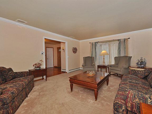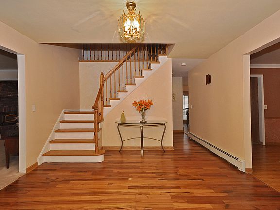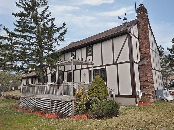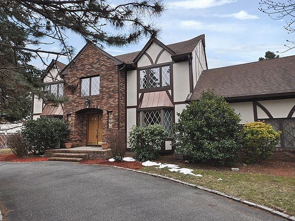 Brick & stucco Colonial with diamond-pane windows. Double door entry to Foyer w/HW floor. LR w/W under wall/wall carpet, bow window. Formal DR w/chair rail, crown molding, HW floor. Family Roomw/ full wall brick FP, knotty pine diagonal paneling, recessed lighting. Updated center-island Kitchen w/granite ctrs, wood cabs, Breakfast Area & French Doors to deck. First Floor BR w/HW floor & double closet. FF Full Bath w/pedestal sink, stall shower. FF Laundry. MBR Suite w/WIC & beautifullt tiled MBath w/stall shower. 3 Addl. upstairs BRs w/wall-to-wall, abundant closet space. Hall Bath w/jetted tub, stall shower, decorative tilework & generous storage cabinets. Fin Bsmt Rec Room w/paneling, wet bar & recessed lighting. Deck with arbored pergola for perfect warm weather enjoyment and entertaining!