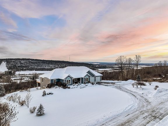 As you meander up French Hill and then onto Bluff Ln. you begin to anticipate the days, sunsets, evening skies, and change of seasons to be enjoyed from your westerly facing sprawling single level executive home with expansive views of St. Albans, Lake Champlain, the Adirondack Mountains and Montreal. The wonderful curb appeal greats you. Then, upon stepping inside you instantly feel the inviting grandeur of this well laid out open concept home with vaulted ceilings and wall of westerly facing windows that include sliders to the +80' partially covered deck to enjoy morning coffee and evening sunsets from. The dining, kitchen, and living space with built in cabinets and gas fireplace, are open to one another making it perfect for gatherings. Master ensuite with tiled walk-in shower and large walk-in closet is located at one end of the home with an additional bedroom, den and full bath on the other. A home office, mudroom, and laundry room with sink and cabinets rounds out the first floor. Now, heading downstairs, the newly remodeled +2,400' finished walkout basement features a bar area with seating and quartz countertops, game space, sprawling TV area for movie nights, large bedroom with barn doors to walk-in finished closet, full bath, wall of built in book shelves, and cedar closet for storage. In addition: custom black out blinds, 2 mini-splits, cabinets and workbench in the garage, and whole home circulation. This is simply a uniquely beautiful property to call "home".