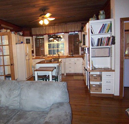 Quaint farmhouse built along the marsh and tital-waters of Hudson Creek, with great views from a large screened in porch. Some distance from the house, a barn complete with horse stalls and ample work space, upstairs a guest efficiency apartment (or artist's studio, or private office, you decide). A chicken house and an equipment shed find home elsewhere on the property. A small fully operational farm close to town, yet a country setting within itself. The house is constructed of pine beams,floors & walls from an old farmhouse in Hazlehurst, Georgia. The home is built to provide the atmosphere of an old farmhouse while providing the the advantages of modern living. The screened porch provides a great entertainment venue or a quiet early morning coffee stop with super views.