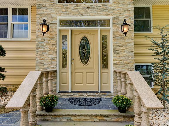 Fabulous paver walks and patios surround this beautifully renovated custom home. Granite railings lead to the impressive stone trimmed entrance. The leaded glass door opens to the foyer with its 12 ft ceiling and floor medallion. Downstairs, main level features an open layout. Kitchen boasts crisp white cabinets with granite counters, tile floor, and SS appliances. Exhaust hood vents outside. Great room has an engineered hardwood floor and a wood burning fireplace. There are hi-hats and crown molding. Upstairs features 4 bedrooms. Master has a sliding door that opens to a private deck, a walk in closet, and beautiful new bath. Guest bath also is new. House has all new windows and doors, siding and 200 amp electrical service. This is a must see!