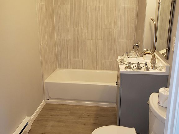 2nd floor unit Electric Baseboard heat Renter pays 1st and last month when signing 6-month lease. Renter pays all utilities. Renter pays for snow removal. Pet deposit required. No subletting. No dogs, Cat allowed.