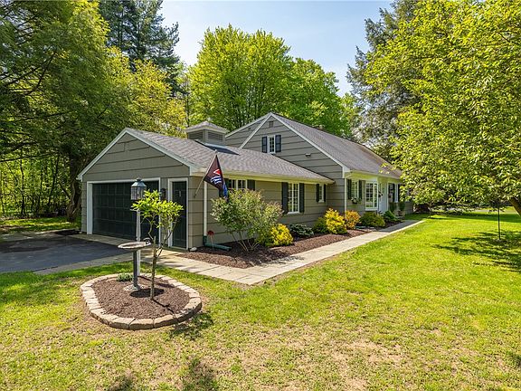 Welcome to this Classic Quality Built John Ryan Charming New England Cape** Located in the sought-after Fairport community w/ PITTSFORD schools, THE BEST OF BOTH WORLDS ! On a cul-de-sac off Countryside Rd., Your wonderful stay-vacation home awaits! Kick off your shoes and dive right into the Caribbean look kidney shape inground pool. Relax poolside on the patio under the Umbrella Tree, perfect for hosting gatherings. The setting is beautiful, peaceful and PRIVATE. Ideally located between Pittsford & Fairport Villages & the Erie Canal Path. Beautiful VIEWS from every window .This is THE TOTAL PACKAGE with Updated White Kitchen featuring Quartz / Stainless. Gorgeous Hardwoods all refinished. Fresh Paint top to Bottom . Lovely Mill Work and Built Ins. Huge light filled Family Rm features oversized WB F/P, picture window & pull down Big Screen for movie lovers. Brick Gas F/p in Den w/Blt-Ins and a delightful heated Enclosed Rear Porch overlooks the treed setting. New Furnace w/ instant hot water 12/21, roof 2008 tear off 50 yr shingles.Sq Ft per appraiser. Owner is Realtor ** Open Saturday 1-3 & Showings begin Fri. 5/17 at 10:30 AM and Negotiations Mon. 5/20 at 4 PM.