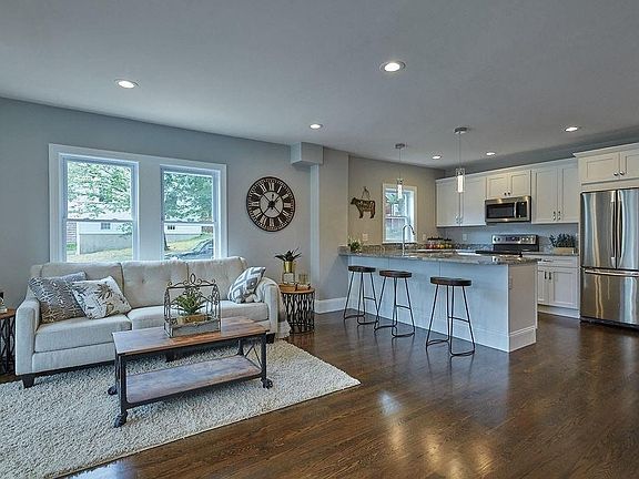 Open house canceled. Stunning complete renovation with impeccable attention to detail that is evident the moment you walk in the door! The first floor of this amazing home features an open concept kitchen and living space perfect for entertaining plus a first floor master wing complete with double closets, luxurious bathroom, and an office/walk in closet. Upstairs you will find two additional bedrooms and another well appointed full bathroom. This property also boasts a hydro-air heating system to make those cold New England winters just a little more comfortable, central air conditioning for those warm summer days and two driveways, one with a garage. Nothing left to do here except move in and call this home.