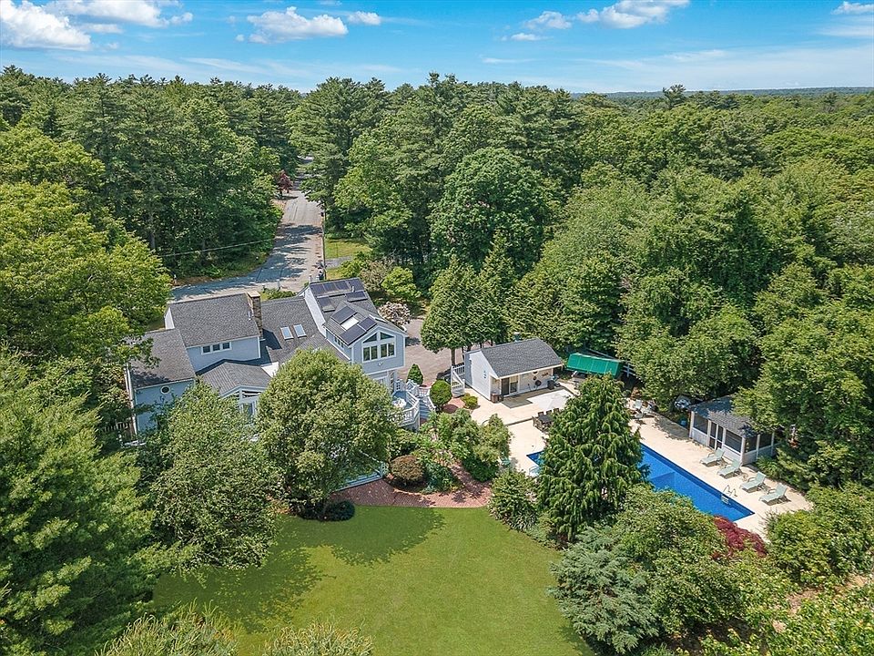This expansive resort-style home is designed to accommodate everyone with ease. Featuring 5 bedrooms, 4.5 bathrooms, and three levels of living space—including a private guest/in-law apartment—this exceptional property boasts an updated kitchen with modern appliances, formal living & dining rooms, a primary bedroom suite with enormous walk-in closet plus dedicated spaces for work and play, including a game room, gym, and home office. Step outside to a true outdoor oasis, where the oversized pool becomes the heart of entertainment. Enjoy al fresco dining in the screened patio, relax at the bar/grill area with seating, or retreat to the cabana/pool house, which comes complete with a kitchenette, full bathroom, and outdoor shower. Situated on 1.2 acres, there's plenty of yard space for gatherings, games, and making unforgettable memories. Town water, Title 5 approved septic system, oil heat, Central AC & mini-splits and owned solar panels for energy efficiency are a bonus.