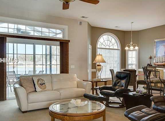 Enjoy beautiful sunset water views from the private screened porch of this home. This stunning builders personal home has many, many upgrades and reflects pride of ownership throughout. A floor plan that is inviting with ease of flow. Spacious great room with cozy fireplace, dining room meant for entertaining, generous sized kitchen with stainless steel appliances, breakfast bar and eat-in area, conveniently located office, sumptuous master suite and two private guest suites! Great location with water and golf views. Neutral colors throughout. Move in ready!